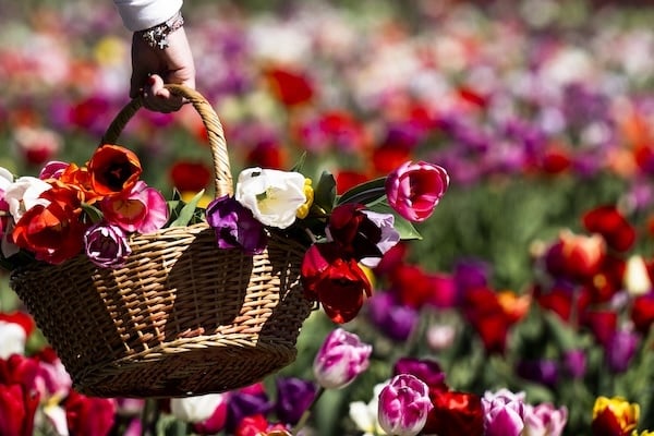 A visitor picks tulips in a field of âTulipani Italianiâ tulips at the Agriturismo Cascina DUC farm, in Grugliasco, near Turin, Italy, on March 31, 2026. The Tulipani Italiani you-pick garden was launched by the Netherlandsâ Nitsuhe Wolanios and her companion Edwin Koeman. With an entrance fee, visitors visit the garden, pick tulips, and relax. (Marco Bertorello/AFP via Getty Images) |