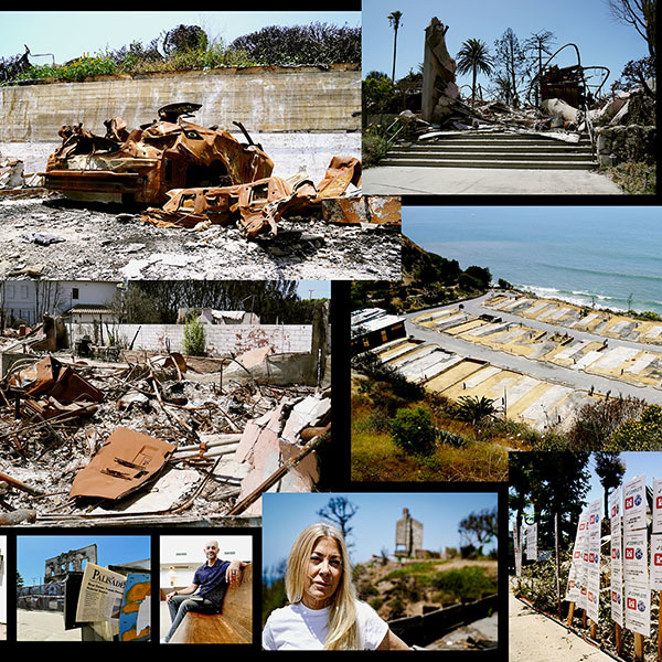 Pacific Palisades residents see a long road ahead half a year after the Los Angeles fires that damaged or destroyed more than 18,000 homes.