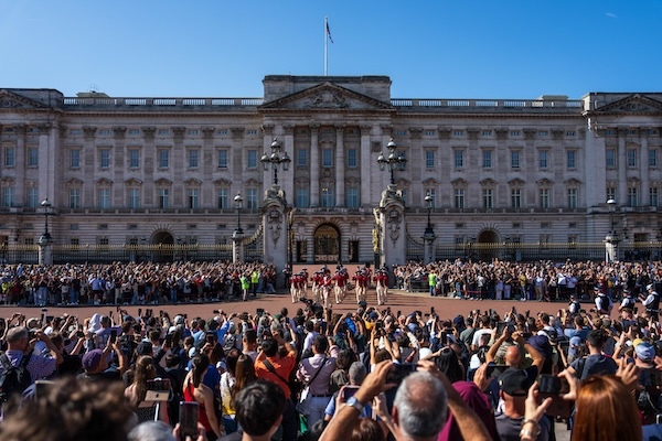 A United States military band takes part in Changing of the Guard at Buckingham Palace in London on Sept. 19, 2025. For the first time an American military band takes part in the Changing of the Guard at Buckingham Palace. (Carl Court/Getty Images) |