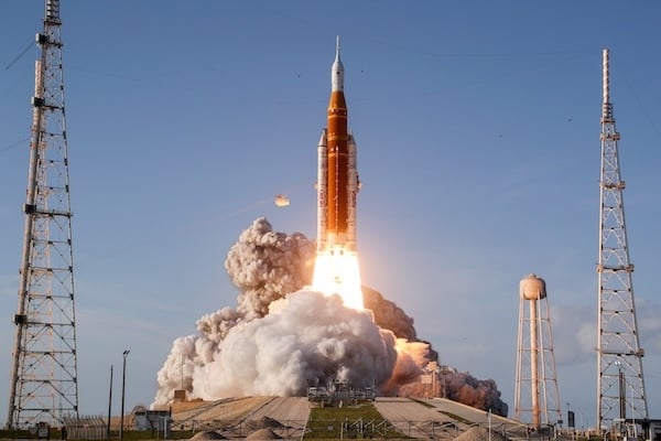 NASA's Artemis II Space Launch System rocket carrying the Orion spacecraft lifts off from Launch Complex 39B at Kennedy Space Center in Cape Canaveral, Fla., on April 1, 2026. (Joe Raedle/Getty Images) |
