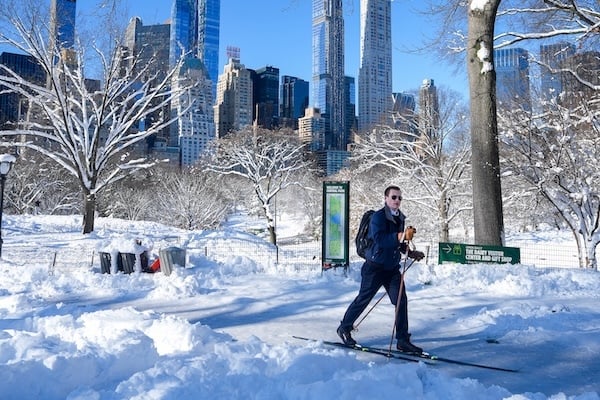 A man on cross-country skis travels through Central Park after a historic blizzard hit parts of the East Coast, in New York City, New York, on Feb. 24, 2026. (Ryan Murphy/Getty Images) |